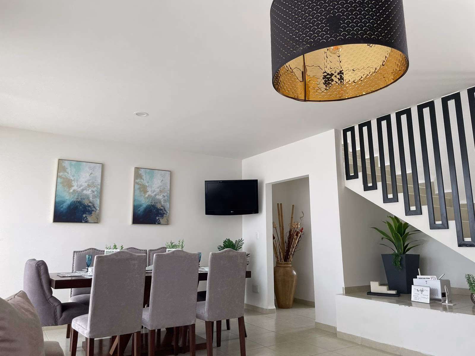 This spacious home features 3 full bedrooms and 2 1/2 full bathrooms, the living room and main bedroom are equipped with flat-screen TVs. The house includes high-speed internet (200 Mbps), a fully equipped kitchen with refrigerator, a dining area, a comfortable living room, and laundry facilities with washer and dryer.