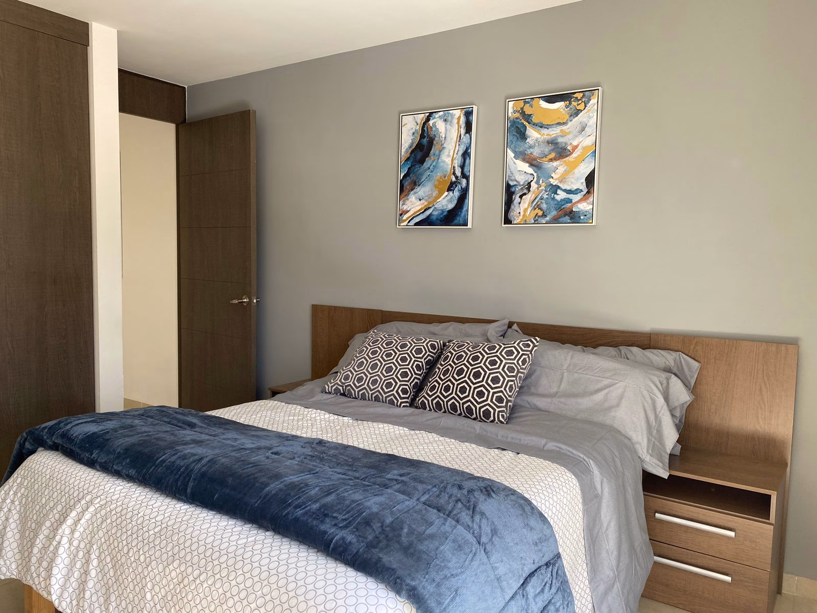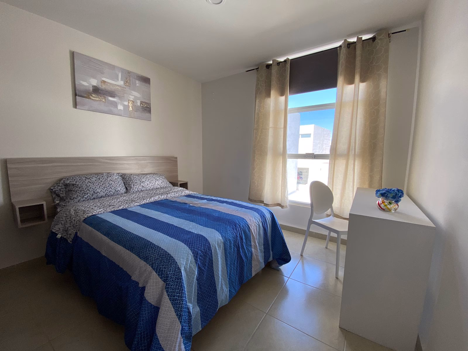 Residents enjoy access to community amenities including an outdoor swimming pool, gym, green spaces, and a patio with grill—perfect for relaxing after a workday. The gated community provides 24/7 security through a controlled entrance and guard shack, ensuring peace of mind throughout your stay.